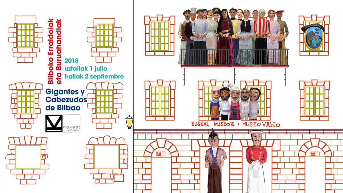 El Museo Vasco presenta su ya consolidada exposición Gigantes y Cabezudos de Bilbao. En esta ocasión, la muestra está formada por la generación de 1988 integrada por 10 Gigantes y 9 Cabezudos. Además, les acompañarán la pareja de 1998 formada por Pichichi y Lina, una pareja de la generación de 1980 que estará en la entrada del Museo, y el cabezudo que Bilboko Konpartsak encargó en 2012 con el escudo que Juan Carlos Eguileor diseñó para la pañoleta azul de Aste Nagusia de 1978. La muestra se podrá disfrutar entre el 1 de julio y el 2 de septiembre de 2018, y estos populares personajes ocuparán el recién inaugurado Claustro cubierto.